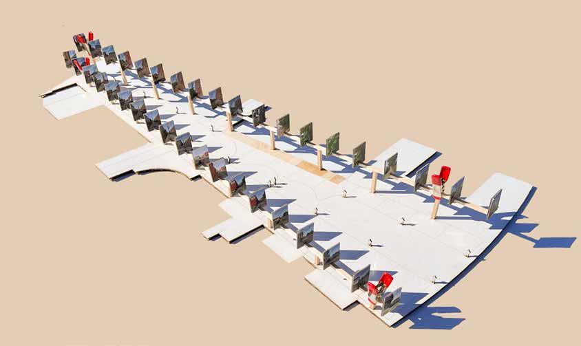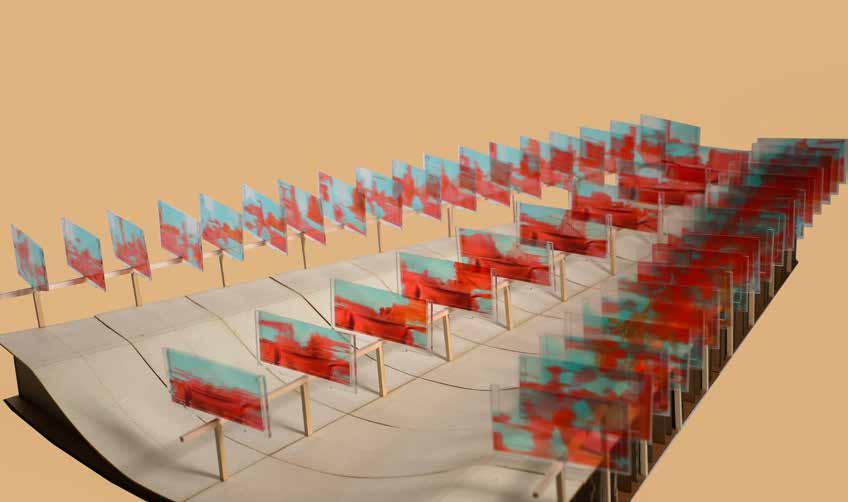 The incline degree is to channel the audience's perspective and interaction with the frame. Furthermore the base’s etching is the comparison of the route on both sidewalks. Within each frame, it conveys the reality at that particular moment and an analytical model of the mobility of the pedestrian.