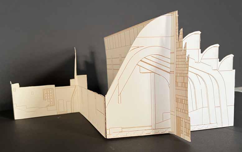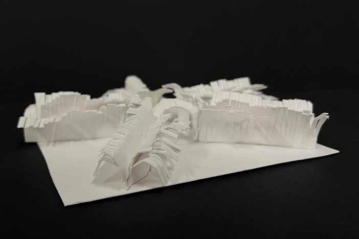 The interest in the multitude of the tentacles and working at a micro level, curated its way into a sustainable and empirical experience of architecture. Utilizing techniques of cutting, tracing, folding, and bending; it generated into the first iteration of the model.