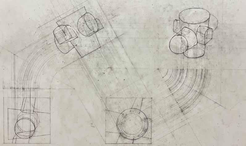 This section and section annotates an overlay with these dimensions/arc angles. Use line weight to convey hierarchy within the system. a single overlay of red is to distinguish this layer of information from the black and white drawing beneath.