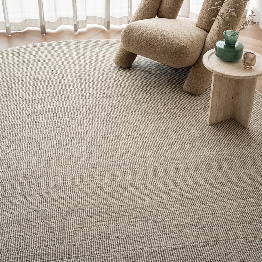 This understated grey carpet is a modern heirloom in the making. The pure wool carpet has a narrow stripe pattern in black and ivory to create an elevated neutral with a sense of movement.