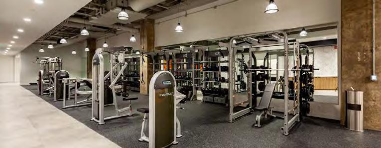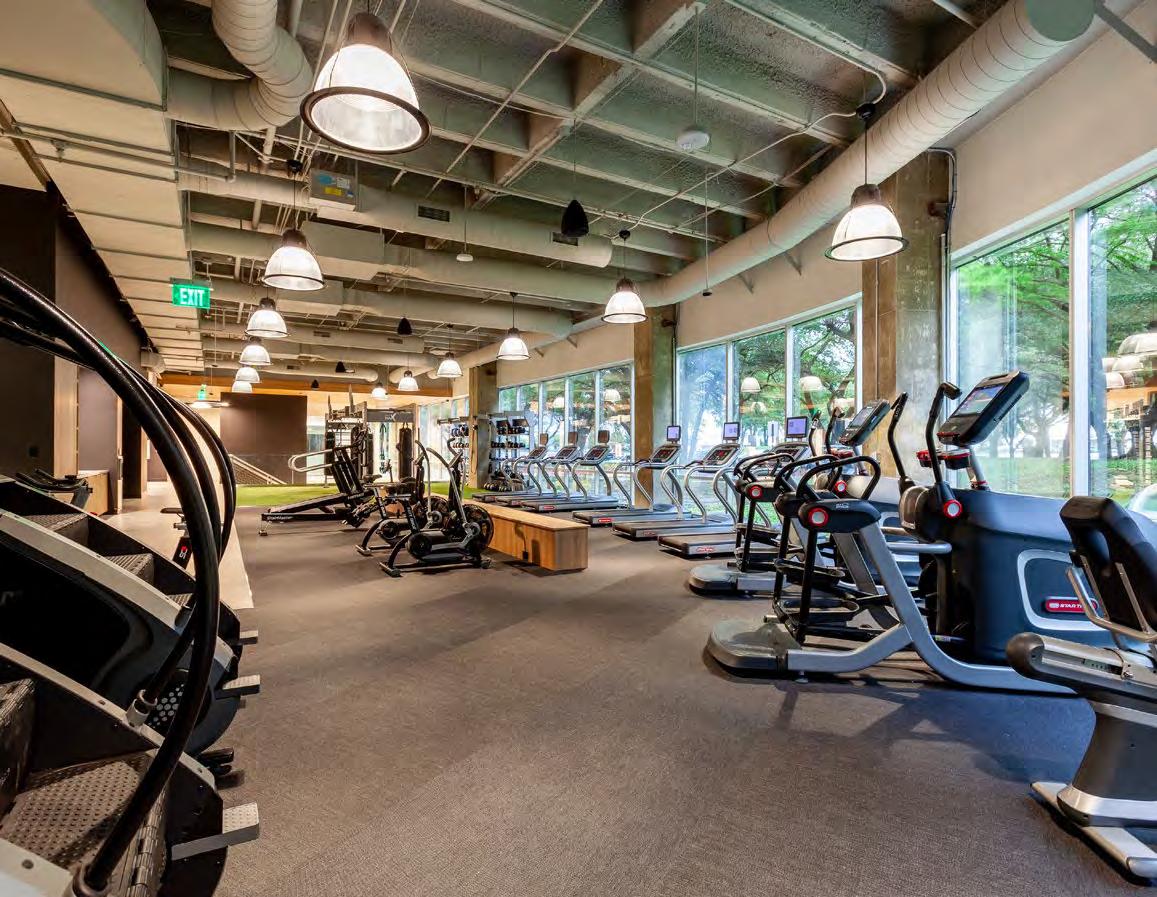 The newly modernized 9,000 SF Fitness Center with 15ft ceilings includes the following: