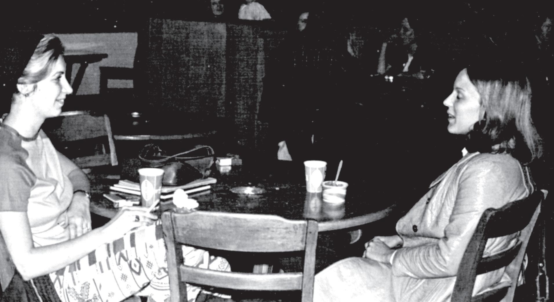 My favorite hangout was, of all places, the cafeteria after dinner (or sometimes after lunch), where I would linger with a close friend over coffee, having long, deep, heartfelt conversations. Holding the warm cup in my hands while the late autumn darkness fell outside the windows and our conversation meandered from one topic to another was far more interesting and meaningful to me than the studying I should have been doing instead. My other main memory is of going for long, lonely, moody walks at night. — Linda LaPuma Bial