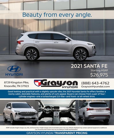 Good looking and practical with a slightly upscale vibe, the 2021 Hyundai Santa Fe offers families a roomy cabin, desirable features, and plenty of curb appeal. Buyers can choose from a pair of fourcylinder engines—one a turbocharged 2.0-liter—and front- or all-wheel drive.