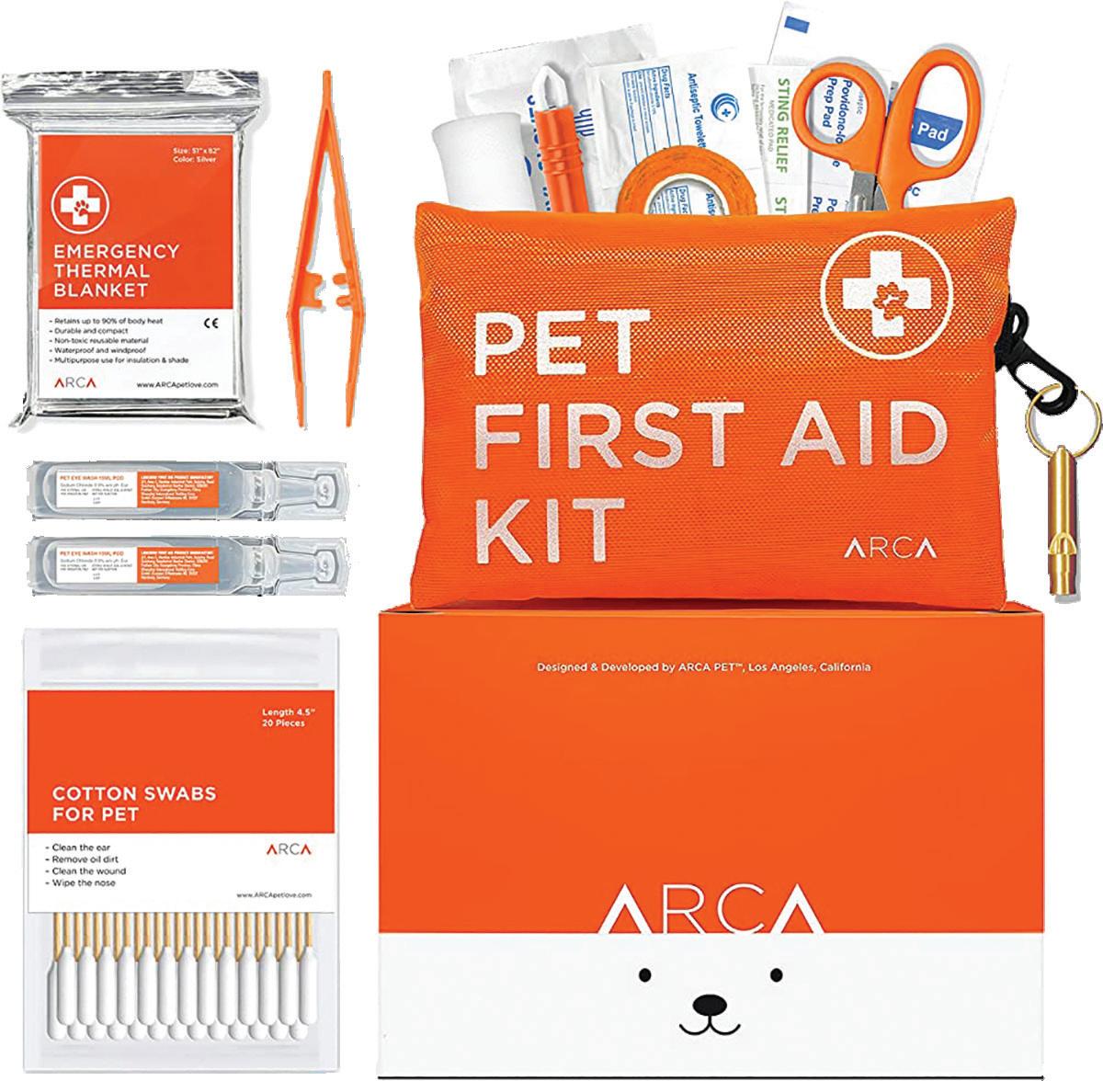 ARCA PET Dog First Aid Kit - Pet Emergency Travel kit. Water Resistant, High Visibility Reflective First Aid Pouch. A must have for Camping, Hiking, Backpacking, Sports, or Hunting.