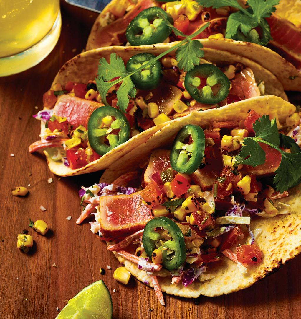 You can’t make everyone happyyou’re not a taco! Well, Firebirds Wood Fired Grill nows how to make you happy- even if it’s not happy hour! They have incredible Tuna Street Tacos witAvocado-lime slaw & charred corn salsa on the their Firebar Menu. And don’t forget to order a lemonadeevery lemonade ordered they donate $1.25 to “Alex’s Lemonade Stand, a charity focused on fighting childhood cancer!