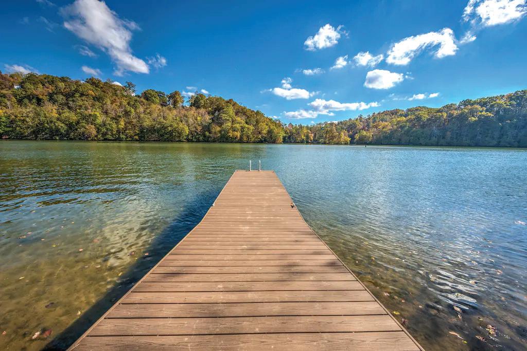 #1. Norris Lakefront in Big Creek “Suits Us Just Fine”. This house has a lot going for it, but all I can say is- check out the water access!! And for $265 a night average, it’s definitely a contender. Nestled in the woods on 3 private acres with a lakefront inlet cove for your group’s private getaway. Recently updated charmer, offering 2500+ sq ft on three levels with firepit, fireplace, hot tub, dock and so much more. They also have a companion house you can rent next door called “Suits Us Too”. VRBO