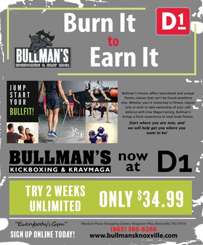 Burn It to Earn It Bullman’s Fitness offers specialized and unique fitness classes that can’t be found anywhere else. Whether you’re interested in fitness classes only or wish to take ownership of your selfdefense with Krav Maga training, Bullman’s brings a fresh experience to total body fitness.