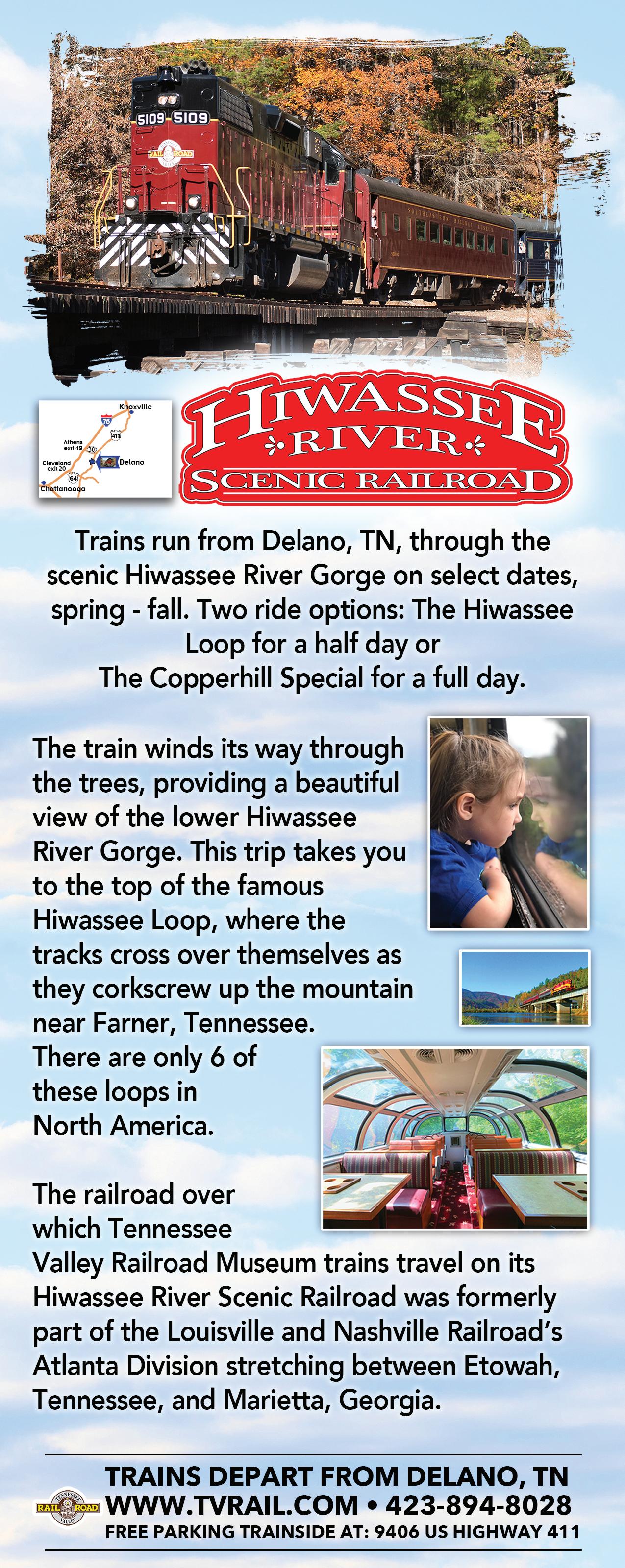 12 | | JUNE | JULY 2023 HIWASSEE, VONORE, & MARYVILLE, TN Come Visit Our Newly Renovated Museum! Stay informed - check out our website or like us on Facebook. Visit & enjoy our outdoor exhibits and take a walk on a 1.5 mile trail. Open Year Round Mon - Sat 9am - 5pm • Sun Noon-5pm MILITARY DISCOUNTS SENIOR DISCOUNTS