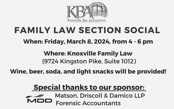 Around the Bar: The Specialty of Elder Law: The Myths and the Realities . . . Page 9 Schooled in Ethics: Legal Ethics Issues Involving Artificial Intelligence Continue to Emerge . . . Page 19 A Monthly Publication of the Knoxville Bar Association | March 2024