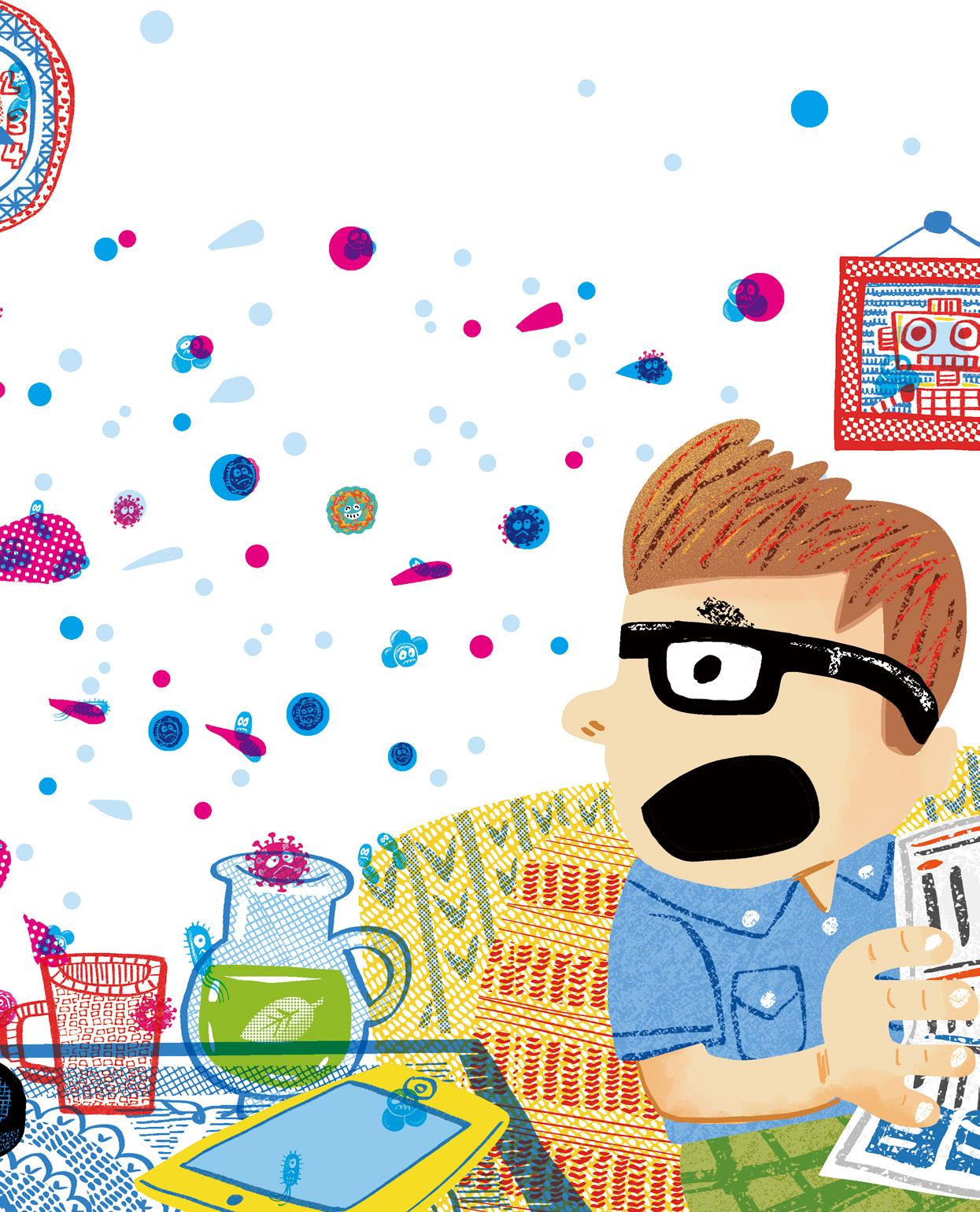 請你拿起2支「魔 法放大鏡」,放到 頁面上,瞧一瞧細 菌和病毒在哪裡!