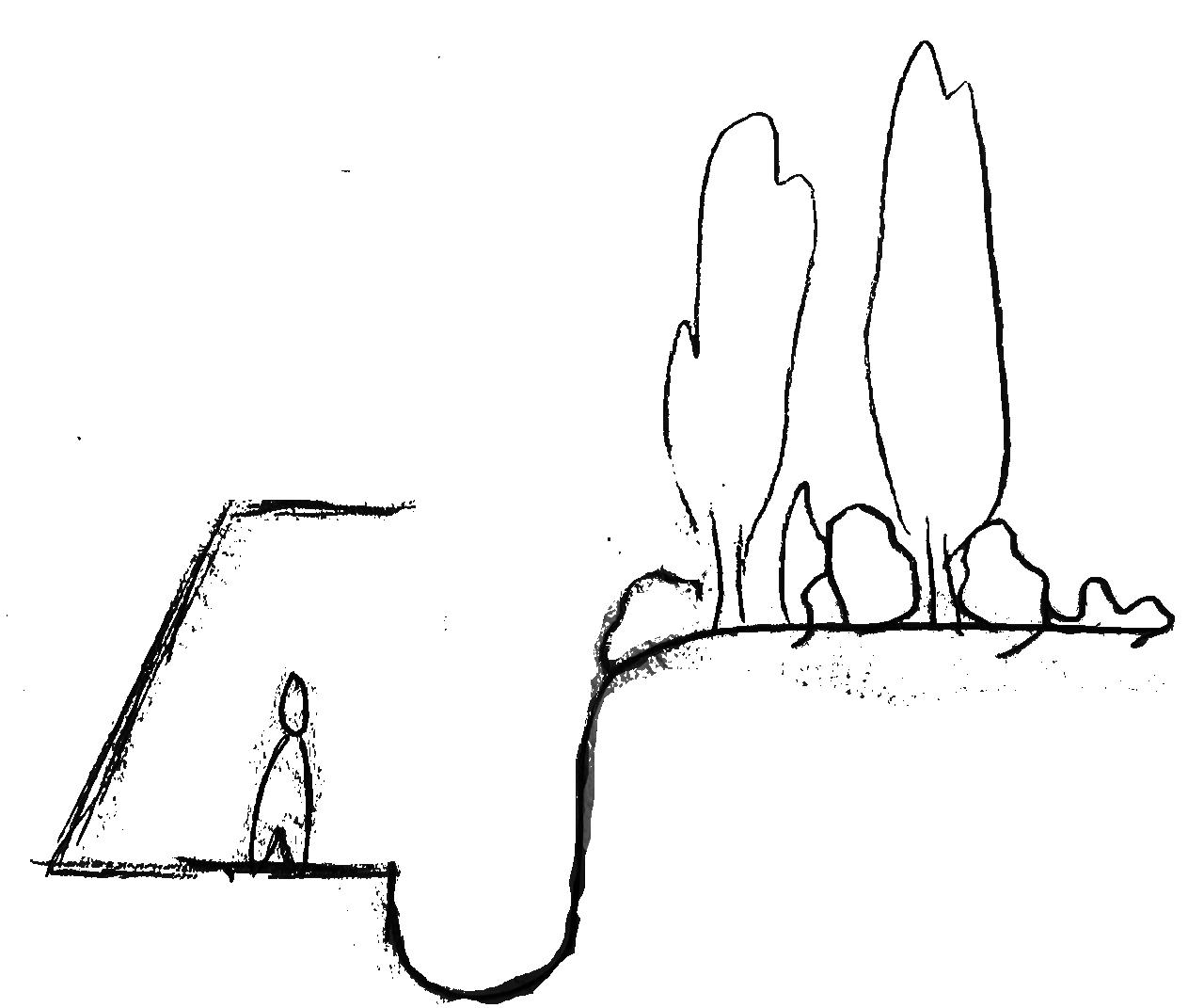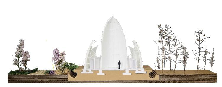 N THE EVOLUTION OF EMOTIONS, ARCHITECTURAL FEATURES IMBUE A SENSE OF CALM AS VISITORS ARE DIRECTED THROUGH A GARDEN AND MET AT A SPACE THAT EMBODIES A SUBTLE AMBIANCE OF LONGING. ONCE VENTURING THROUGH, VISITORS WILL THEN ENCOUNTER A WINDING PATH DESIGNED TO SPARK CURIOSITY AND WONDER, ENCOURAGING EXPLORATION. EVENTUALLY THEY ARE MET AT THE SANCTUARY, A SERIES OF PROJECTING PETALS DESIGNED TO PROMOTE A SENSE OF TRANQUILITY, AND TO PROVIDE A SETTING FOR REFLECTION AND COMMUNAL INTERACTION.