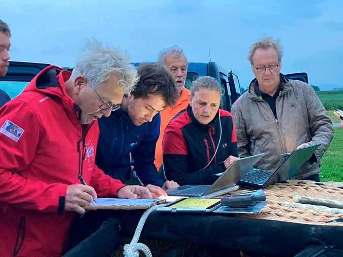 Opstijgen in Metz Woensdag en donderdag voorafgaand aan de start waren drukke dagen: zandzakken werden gevuld en opgeslagen in de loods op het startterrein. Vrijdag was het zover. De zes vrachtwagens met waterstof arriveerden, de meterslange vulslangen werden uitgerold en langzaam maar zeker vulden de enorme ballons zich met gas. Het was een indrukwekkend schouwspel dat veel publiek naar Metz trok. Enkele uren later stonden alle ballons trots overeind, klaar voor hun avontuur. Voor de start volgde een strikte veiligheidscheck. Elk team moest alle verplichte materialen aan boord hebben: radio en back-up, GPS met back-up, ELT, zuurstofinstallatie, reddingsvesten voor een eventuele zeeoversteek, enzovoort. Pas daarna mochten de ballons in de juiste volgorde naar het podium. Onder luid applaus en begeleid door de nationale hymnen stegen ze één voor één op voor de 68ste editie van deze legendarische wedstrijd — een moment van kippenvel.