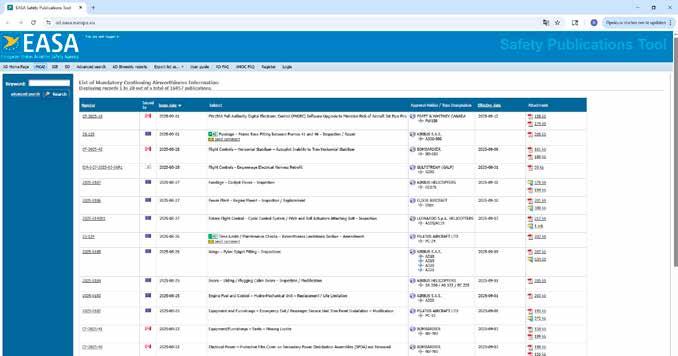 EASA AD’s worden gepubliceerd op de website van EASA onder https://ad.easa.europa.eu. Hier vind je alle AD’s opgesomd, ook die voor vliegtuigen en helikopters. Via het zoekvak kun je het aantal resultaten filteren. Wanneer je een login aanmaakt, dan kun je daarnaast deze filters ook nog eens opslaan en eventueel email notificaties aanzetten.