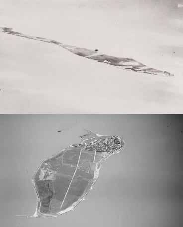 GODARD WAS - SAMEN MET ZIJN PASSAGIERS - DE EERSTE IN DE GESCHIEDENIS DIE URK EN SCHOKLAND VANUIT DE LUCHT ZAG. SCHOKLAND BESCHREEF HIJ ALS ‘LA LAME DE COUTEAU’ OFWEL EEN MESBLAD EN URK DEED HEM DENKEN AAN ‘UNE OMELETTE SOUFLÉE SUR UN PLATEAU D’ARGENT’ OFWEL EEN SOUFFLÉ OMELET OP EEN ZILVEREN PRESENTEERSCHAALTJE (FOTO’S NIMH).