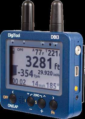 Features include: altimeter, variometer, and temperature indicating displays, flight timer, audio alarms, and an integral GPS showing ground track and speed. The DBI3 also has an on-board flash memory capable of storing up to 10,000 hours of recoverable flight data. It is powered by an integral LiPo battery lasting up to 12 hours per charge; no replaceable batteries to contend with. It has a metal body, one Bluetooth antenna and one GPS antenna. It also has a rotary switch that ensures safe travelling with the DBI3 totally disconnected from the battery.