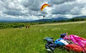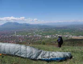 Het is een flinke rit naar de bergen ten zuidoosten van Plovdiv. Ook hier is het weer verre van optimaal met een wolkenbasis net boven de start. En uit de wolken valt regen, maar gelukkig heeft de lokale vliegclub een schuilhut gebouwd op de startplek. Knus zitten we bij elkaar en een lokale piloot vertelt over een recente vlucht die hem van hier tot de Griekse kust tot ruim 100 km naar het zuiden bracht. Had je een paspoort mee, vraag ik. ‘Welnee, nergens voor nodig, gewoon teruggelift’, is het vrolijke antwoord. Als het een beetje opklaart, gaat de cursusgroep van Nikolay van vliegen. De start is een mooie grashelling, maar de landing heeft een vergelijkbare hellingshoek. Een hele uitdaging voor de beginners met amper vluchten op de teller. Ikzelf vlieg een tijdje op wolkenbasis, net boven de start dus, en kan uiteindelijk toplanden. Wel zo makkelijk vanwege de auto.