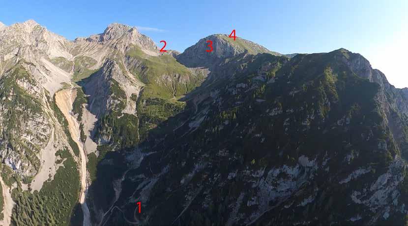 • Vind je een top helemaal niet interessant, is het minder weer aan het worden, of heb je het wel gehad? Vlieg dan vanaf de helling naast de berghut het dal in. Het hoogteverschil is dan duizend meter in plaats van dertienhonderd meter. Iets minder spectaculair want je vliegt niet langs de rotswand, tenzij je wat meer mee hebt dan een singleskin en gewoon op thermiek alsnog langs de top vliegt. Het is immers een zuidwand en dat werkt wel midden op de dag als de zon schijnt. Je kunt de tocht dus zo zwaar maken als je wilt. Voor het ontbijt terug of twee dagen lang genieten in de bergen? Het kan hier allemaal.