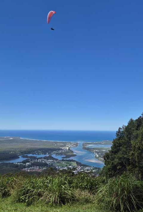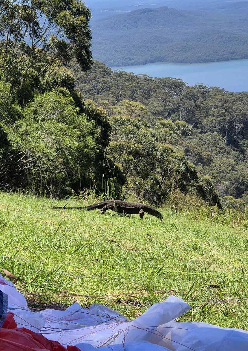 North Brother - een van drie bergen aan de kust waar een boeiende Aboriginallegende aan vast zit. Iets met jaloezie en moord en doodslag. De start is leeg, op een rondsluipende goanna na. Koos heeft nog net voldoende lift om te blijven hangen, voor mij niet meer dan een glijvlucht met adembenemend uitzicht op de kust bij Port Macquiry. In deze omgeving zijn meerdere stekken, voor elke windrichting is er wel eentje. Op een goede dag kun je hier heerlijk soaren of overland gaan richting het strand en daar landen. Wij hebben niet zo’n dag, en voorlopig slaat het weer om. Regen en wind. Het is per slot van rekening lente en we zakken naar het zuiden af. Steeds verder weg van de tropische invloed.