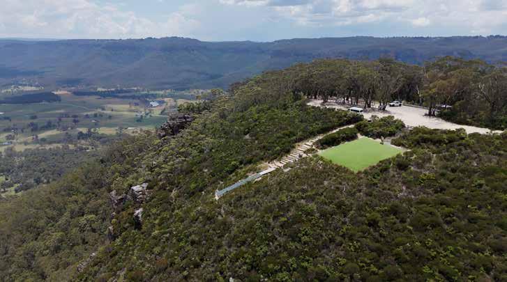 De start van Mt Blackheath met de mat voor paragliders en de ‘ramp’ voor deltavliegers.