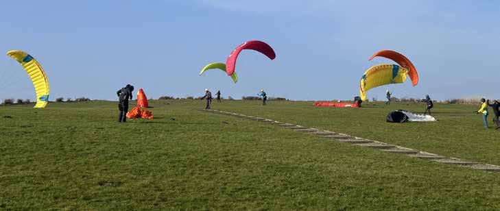 piloten stapsgewijs te begeleiden naar een volledige schermbeheersing en beheerst soaren. Dit bleek zo’n succes dat de methode uitgroeide tot het bedrijf dat het nu is. Max zegt: “Het werd al snel duidelijk dat soaren een unieke discipline is, anders dan vliegen in de bergen of aan de lier. Soaren vraagt om specifieke vaardigheden, kennis en materiaal dat perfect is afgestemd op de wind en de condities aan het strand. Het gevoel en de skills die je hier opbouwt, maken je ook in de bergen en aan de lier een betere piloot.”