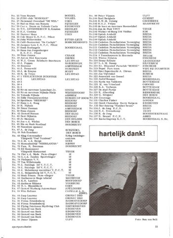 25 Toon Reynen BOEKEL Nr. 99 Peter Tijssen VOLKEL 26 JUDO club "KODOKAN" Nr.100 RoeI Berghuis Nr.lOl H. W. M. Gronig 27 Personeel Zwembad "DE WEL" UDEN Nr.102 H.G.J. Frijns 28 Rud en Rian van Rooyen NlJMEGEN Nr.103 de heer en mevrouw Steenwinkel 29 Cor v. Doorn en Yolande Caels EINDHOVEN Nr.104 Jan de Poot VPCT 30 T;V. ANTENNEBOUW R.Konsten HEERLEN Nr.105 Wicher vd Steeg 106 VbdBat 31H.J. Grotens NlJMEGEN Nr.106 Optiek Arnhold 32 Pastoor Maas UDEN Nr.107 Optiek Arnhold 33 Cok Meyer E. N. P. C. Piloot ETTEN-LEUR Nr.108 Optiek Arnhold 34 John Weltevreden BOSSCHENHOOFD Nr.109 Cadetten Parachutisten Vereniging 35 Café-Restaurant "De Cockpit" Nr.110 Cadetten Parachitisten Vereniging 36 Jacques Lem E.N. P. C. Piloot Nr.111 Cadetten Parachutisten Vereniging 37 Henk Hoefnagels ROOSENDAAL Nr.112 Cadetten Parachutisten Vereniging 38 Hans Jan Jongenburger Nr.113 Cadetten Parachutisten Vereniging E. N. P. C. Piloot 39 Hans Jansen Nr.114 3 Toeschouwers in Moorsele CHAAM 40 Aai en Riet Koeyvoets Nr.115 Wietze Zijlstra NISPEN Nr. 116 Henny Schoute 41 W.J. Groen Reisburo-Interieurs LELYSTAD 42 J. Foppen Nr. 117 L. A. M. Sweep HARDERWlJK 43 Bouwens Nr. 118 Hr. Bloemhof Paraclub "HOHNE" AMSTERDAM 44 J. Bronsveld Nr. 119 Pepsi Para team NUNSPEET Nr.120 Spar Supermarkt A. Di-rven 45 J. de Bruyne SOEST Nr. 121 Jan Vijfvinkei 46 R. de Troye LELYSTAD Nr.122 Annemiek van Gessel 47 1 VERLICHTlNGS lNDUSTRIE Nr.123 AndréBouquet 48 2 LELYSTAD LELYSTAD Nr.124 Karin van Valderen 493 Nr.125 M. van Vriesland 504 Nr.126K.A. Verboom 51 5 GOUDA Nr.127 De stad Parijs 52 Hr en mevrouw Lasschuyt Jr. WESTERVOORT Nr.128 K. Alberding 53 Hr en mevrouw Nijhuis-Niels ARNHEM Nr.129 G. Hórgner 54 Yolanda Nijhuis 55 Eddy Niemantsverdriet BERGEN OP ZOOM Nr.130 Grootings 56 Sportburo "SEEDORF" SEEDORF Nr.131 Charles Fisher 57 Hans v. d. Hoog SEEDORF Nr.132 Dutch Chuteshop Harry Kuipers 58 H. Nijhuis SEEDORF Nr .133 Bar dancing "Numbe r Seven" 59 Peter Zeeman AMSTERDAM Nr.134J. de Jong P.C.N. 60 Hans Jansen SEEDORF Nr.135H. A. Bremekamp 61 Gerard Staman DEN HAAG Nr.136 R. de Jong 62 Bert Dijkstra SEEDORF Nr.137 H. Beuzel P. C. N. 63 Jo Maessen DEN HELDER Nr.138 Jnsructiegroep K. C. T. 64 Jos v. d. Wielen DEN BOSCH 65 Ria en Huub Kortland DORDRECHT 66 Naamloze sponsor 67 A. de Jong SCHIJNDEL 68 Rob Horchner DEN BOSCH Kring trainings69 King Gravemaker Vliegveld "Oud Turnhout" centrum GOES 70J.M. v.d. Berge NISPEN 71 Horecabedrijf "NEERLANDIA" DORDRECHT 72 Fam. H. Boerman 73 Ed Boonzaayer Vliegveld Restaurant TEUGE 74 Piet v. d. Made Para-vlieger id id 75 G. v. d. Zanden Sportvlieger id 76 Pielepeyn V. V. id 77 Ton Willebrands id 78 J. Huizinga lid V. P. C. T. id 79 J. Huizinga lid V. P. C. T. id 80 J. Molenkamp voorzitter V. P. C. T. id 81 A. Snippenburg lid V. P. C. T. TEUGE 82 Henk Braam Para-vlieger MAUBEUGE 83 Deelnemers Stage telatief HOOFDDORP 84 K. H. Lamboo VOORBURG 85 dochters Sikkens 86 H. v. Maasakkers UDEN 87 Gerard Warburg Autoverhuur APELDOORN 88 Wim Hofman CAPELLE A. D. IJSSEL GRONAU BRD 89 Joep Laurenz GRONAU BRD 90 Joep Laurenz BADHOEVEDORP 91 Firma Brandenburg BADHOEVEDORP 92 Firma Brandenburg ZEST IENHOVEN 93 Flying Dutchmen Skydiving Club ElNDHOVEN 94 Gerard van Beek EINDHOVEN 95 Gerard van Beek EINDHOVEN 96 Gerard van Beek EINDHOVEN 97 Gerard van Beek Foto: ULFT 98 Peter Tijssen