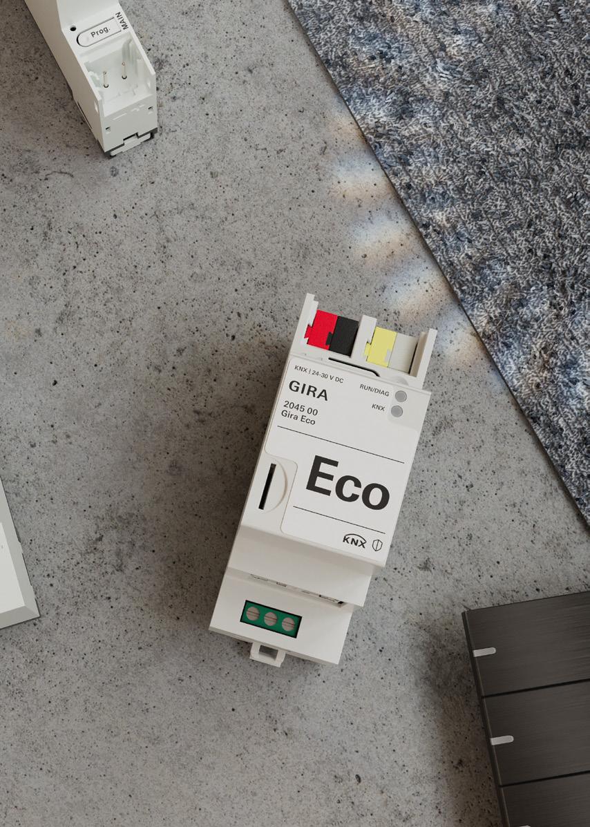 Mit dem Gira Eco können herstellerunabhängig bis zu fünf Ladesäulen einfach in das Smart Home integriert werden. Die Konfiguration in der ETS ermöglicht eine zuverlässige, reproduzierbare und somit planbare Inbetriebnahme. Das dynamische oder statische Lastmanagement stellt sicher, dass der Hausanschluss nicht überlastet wird. Gira