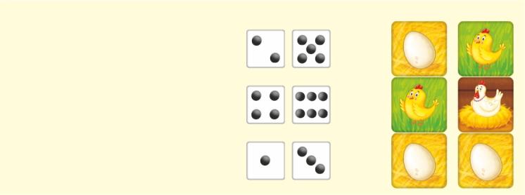 • už kiekvieną kauliuką, kuriame išrideno 4 arba 5 taškus, žaidėjas gauna po 1 viščiuką,