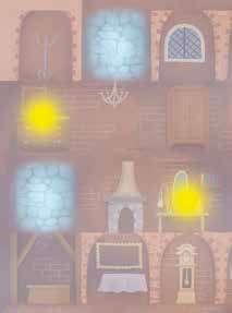 žingsnius iš eilės, kaip nurodo rodyklės, pradedant pirmuoju ir baigiant trečiuoju laukeliu. Tiesi rodyklė reiškia, kad burtininkas menėje turi būti perkeltas per vieną laukelį ta kryptimi, kurią rodo rodyklė.