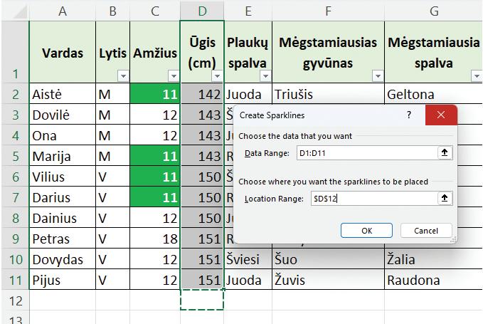 Tikslas: praktiškai pritaikyti sąlyginį formatavimą ir mažąsias diagramas.