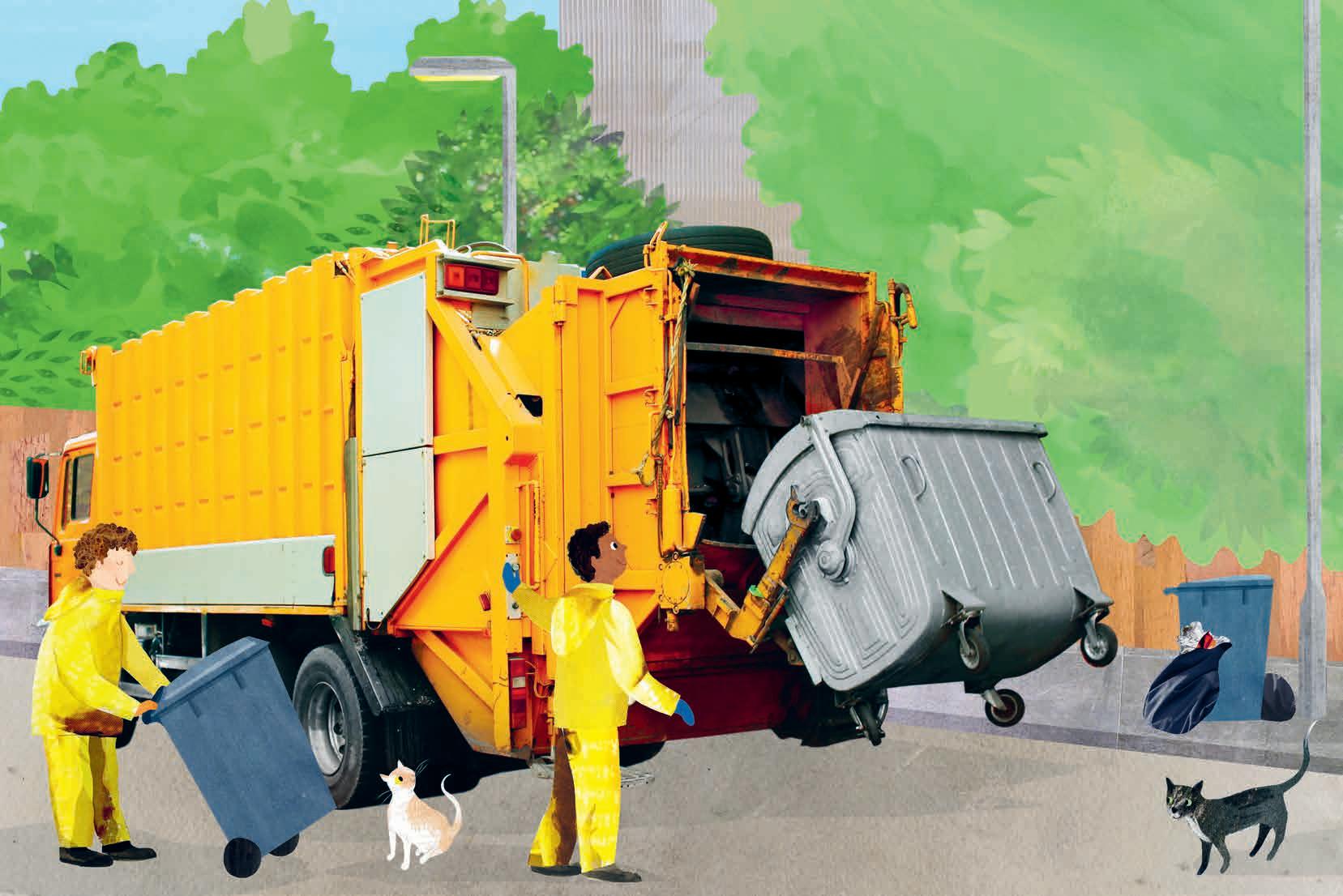 Kai šiukšlės suspaudžiamos, į šiukšliavežę jų telpa daugiau. Į ją iš konteinerio suvertus šiukšles, nusileidžia didelė metalinė geležtė ir jas suspaudžia. Trekšt! Kai šiukšliavežė pripildoma, vairuotojas pasuka sąvartyno link. Ten šiukšlės išverčiamos. Bet ne visos mūsų šiukšlės yra tiesiog išmetamos. Daugelyje vietovių perdirbamų atliekų sunkvežimiai surenka stiklą, popierių, plastiką.