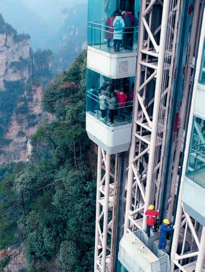 Dangoraižiai siūbuoja vėjyje. Dubajuje, Jungtiniuose Arabų Emyratuose, stūkso 163 aukštų dangoraižis „Burdž Chalifa“. Jei atsistotum pačiame viršuje, pajustum, kad jis svyruoja net 2 metrus į šonus! Bet šie pastatai nenugriūva, nes jų pamatai labai giliai po žeme, visai kaip medžių šaknys. Taip pat dėl to, kad yra pastatyti iš betono ir sutvirtinti plieno strypais ir sijomis.