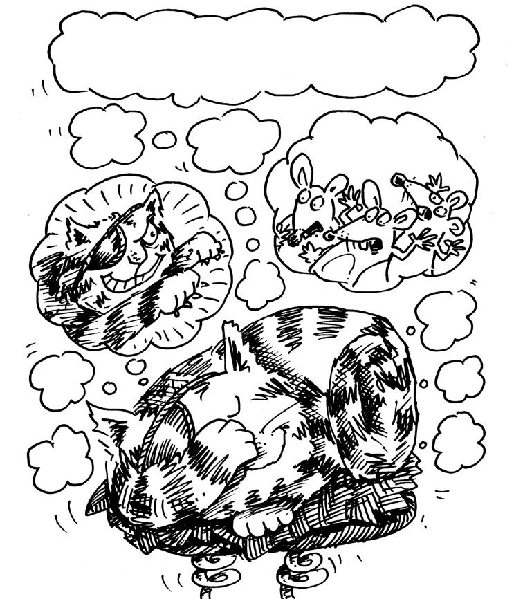 Ir katinas užmigo. Jis taip kietai įmigo, kad ničnieko nei girdėjo, nei matė.