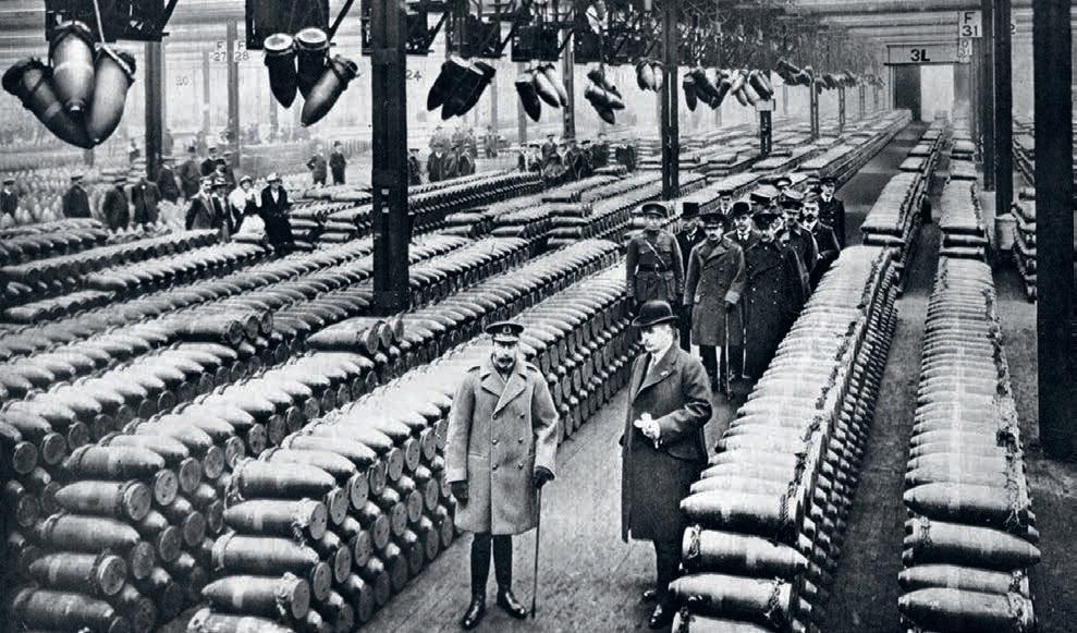 1917 metais karalius Jurgis V su pareigūnais tikrina amunicijos gamyklą