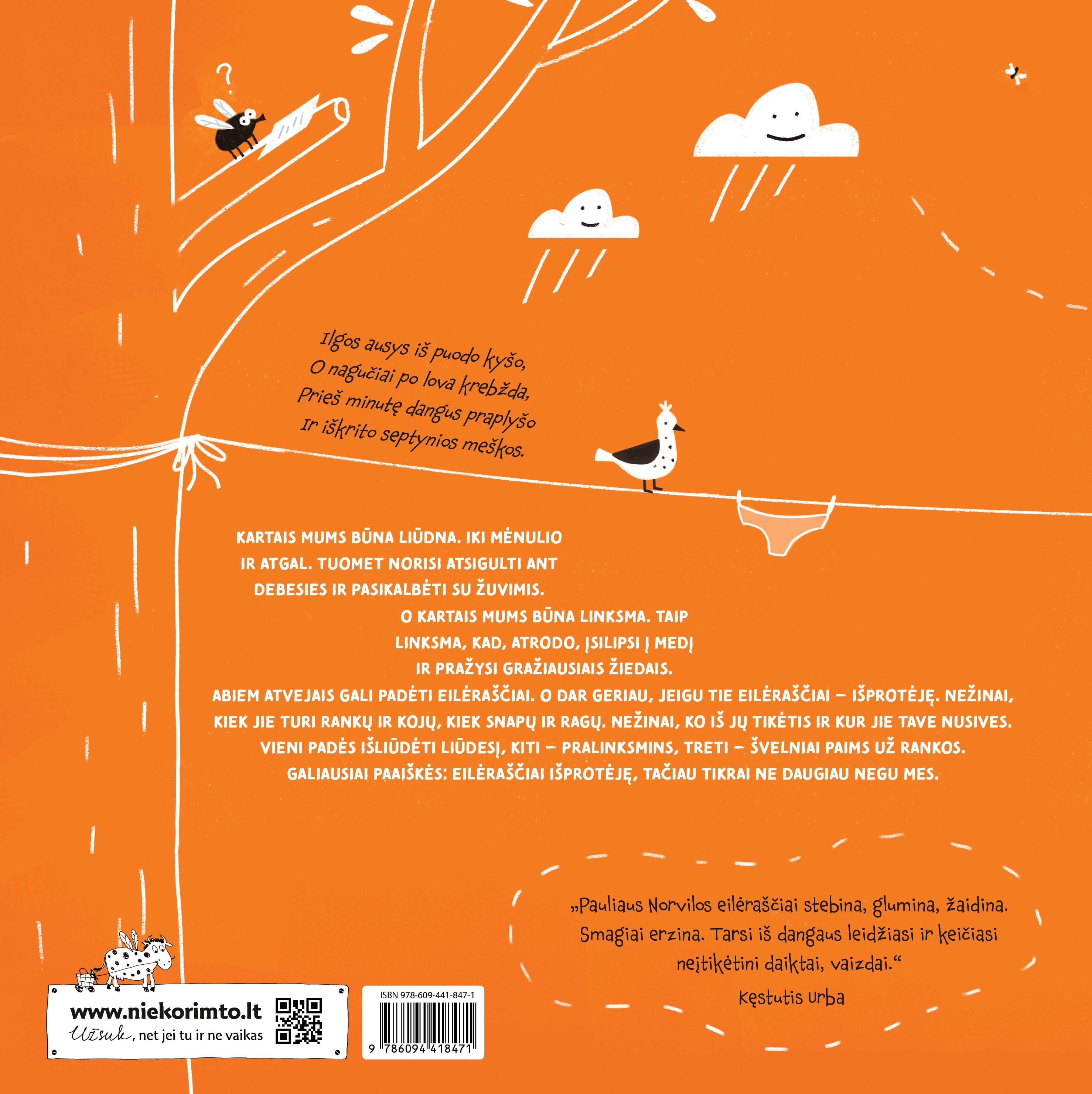 „Išprotėję eilėraščiai“ yra ketvirtoji Pauliaus Norvilos knyga vaikams. Jauno poeto, pažįstančio ir savitai jaučiančio naująją vaikų kartą, knyga.