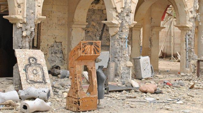 9.17 pav. Net ir XXI a. dalis žmonijos persekiojama dėl religinių įsitikinimų. Teroristų suniokota krikščionių bažnyčia Irakè.