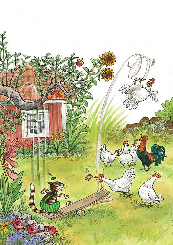 – Gustavsonas susiruošė jį puode išvirti, man pagailo, tai ir parsinešiau, – paaiškino Petsonas. – Pamatysi, kaip vištos apsidžiaugs.