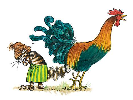 – Tik pažiūrėk, koks gražuolis, kai prieš vištas pasitempia, – rodė Petsonas. – Išdidus kaip gaidys.