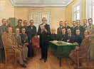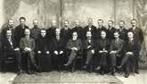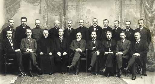 Šioje istorinėje nuotraukoje įamžinti Lietuvos Tarybos nariai, 1918 m. vasario 16 d. pasirašę Lietuvos Nepriklausomybės Aktą.