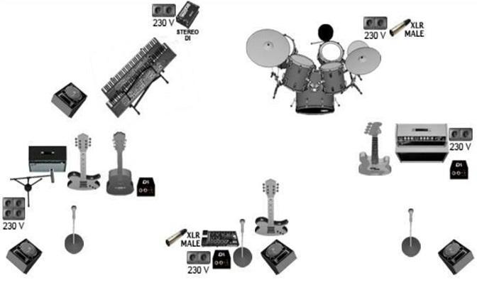 Įrangą pamatome atvykę į renginio vietą. Vertinant garso stiprinimo įrangą iš nuomotojų pozicijos, į sąrašą įtraukta įranga ir yra viskas, ko reikia – nuo mikrofonų iki PA. Tačiau garso inžinieriai įprastai teigia, kad atskiru sąrašu būtina nurodyti „ scenos liniją “ (angl. back line), kurią sudaro atlikėjui reikalinga įranga ir akustinės sistemos. Likusi dalis jau yra įvesties sąraše, tad paprastai išreiškiami pageidavimai tik dėl pagrindinės garsiakalbių sistemos ir garso valdymo pulto.