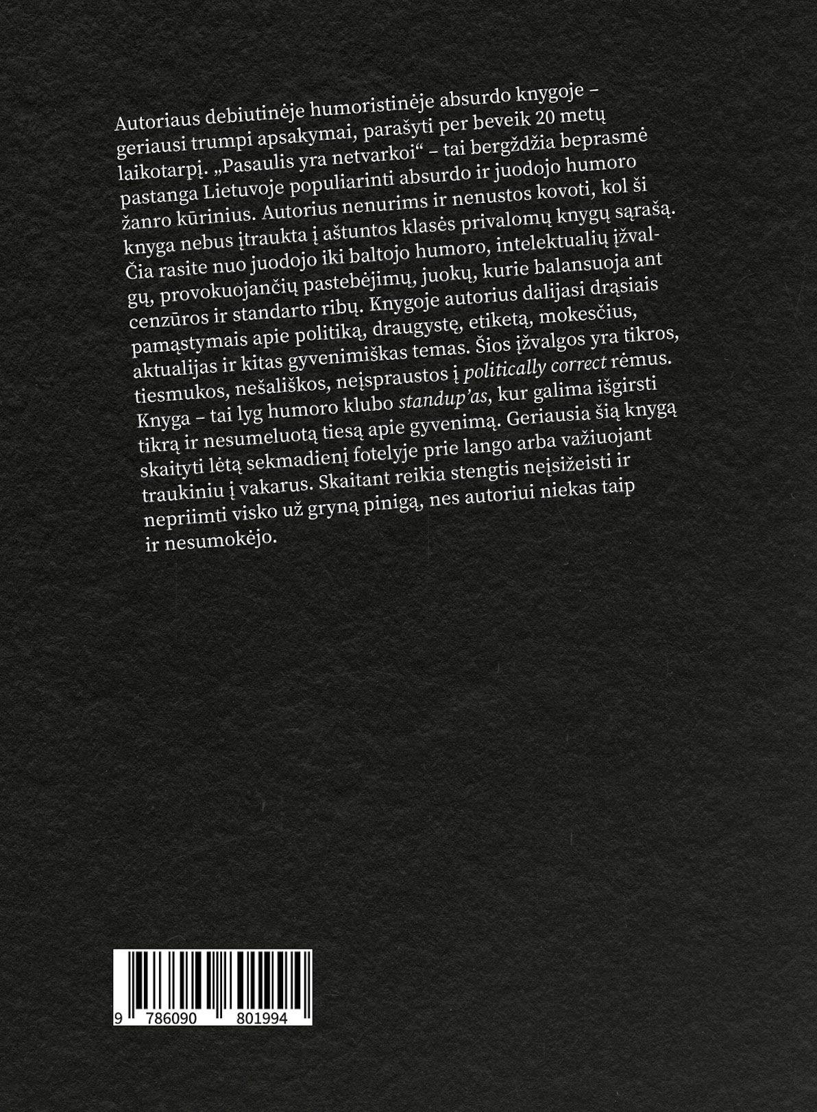 Tai yra kavos staliuko knyga, kuri yra naudinga, kai ateina neprašyti svečiai. Ją galima atsiversti, perskaityti tris sakinius ir tam vakarui užversti. Bet, tikiuosi, ją vis norėsis atsiversti dar ir dar bei skaityti nuo pradžių iki galo ir nuo galo iki pradžių.