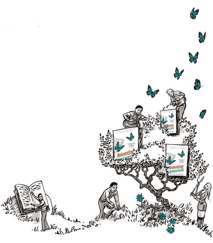 Tai, kad knygos populiarumas taip sparčiai auga, įrodo, jog daugelis jaučiame, kad kazkas su mūsu organizacijomis yra negerai. Dauguma šiandien galetume papasakoti, jog būti darbe tapo varginančiu ir išsunkiančiu procesu. Vienose organizacijose įsigali biurokratines procedūros, kitos tapo vadovu ego įkaitemis ir nuolatine kova del valdzios. Organizaciju padaliniai izoliuojasi ir kovoja vieni su kitais. Biuruose aukščiausio lygio vadovai priima sprendimus, del kuriu ju pavaldiniai lauzo galvas iš sumišimo arba visiškai nusivilia. Daugelis mūsu intuityviai jaučiame, kad reikia nauju formu organizuoti verslą ar ne pelno siekiančiu organizaciju, tokiu kaip mokyklos ar ligonines, veiklą. Ir ši knyga turetu įkvepti atrasti tas naujas formas.