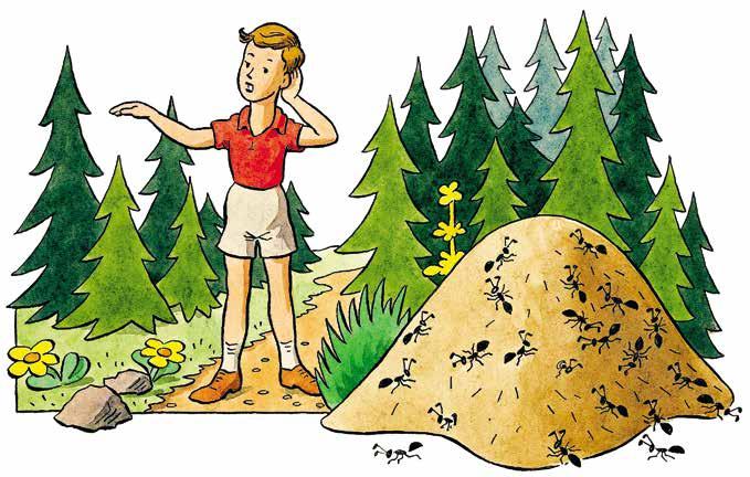 Berniukas nustebęs išplėtė akis. Po egle kūpso aukštas aukštas skruzdėlynas, beveik aukštesnis už patį berniuką, o ant jo knibždėte