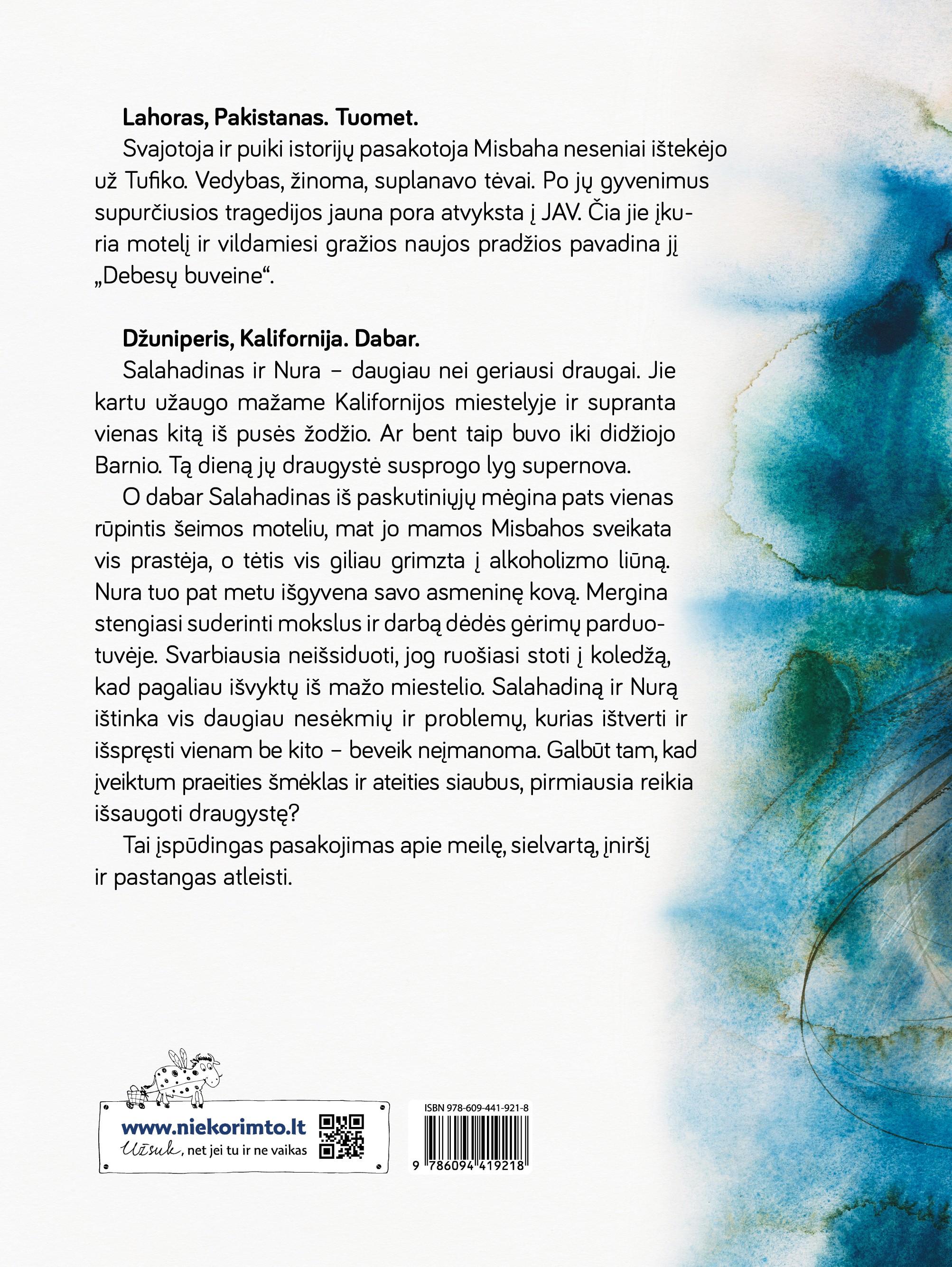 Tai sukrečiantis pasakojimas apie draugystę, meilę, įniršį ir daugybę gyvenimo negandų, kurioms ištverti ir įveikti prireiks kur kas daugiau nei sėkmės. Kadaise Misbaha ir Tufikas iš Pakistano atvyko į JAV kurti naujo gyvenimo. Ne viskas susiklostė taip gražiai, kaip buvo viltasi iš pradžių. Dabar jų sūnus Salahadinas bando suderinti mokslus ir pagalbą senstantiems tėvams, o Misbahos kadaise priglausta ir užauginta Nura dabar gyvena pas pykčio nevaldantį giminaitį ir slapta svajoja apie studijas dideliame mieste. Salahadinas ir Nura visuomet buvo patys artimiausi draugai, tačiau po didžiulio barnio nebesikalba. Kyla vis naujų ir vis didesnių bėdų, kurias išspręsti be artimo žmogaus palaikymo ir pritarimo tampa vis sunkiau. Daugybės literatūrinių apdovanojimų sulaukusiame romane paaugliams ir jaunimui itin jautriai paliečiamos sudėtingos socialinės problemos: tautinė ir religinė neapykanta, smurtas šeimoje, artimų žmonių netektis, alkoholizmas, patyčios mokykloje. Nors knygos temos rimtos ir sudėtingos, tačiau kūrinys įtraukia, o jo tonas viltingas.