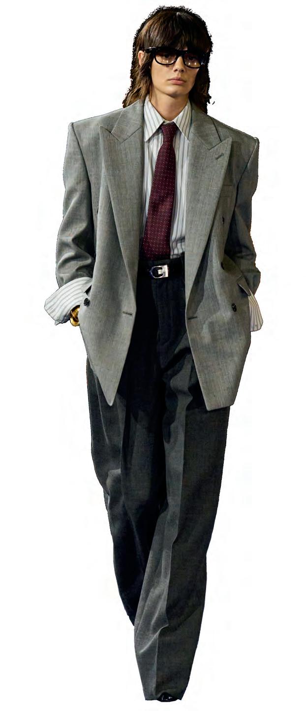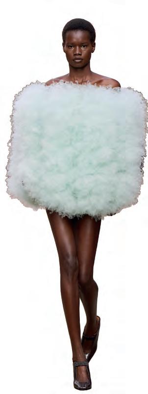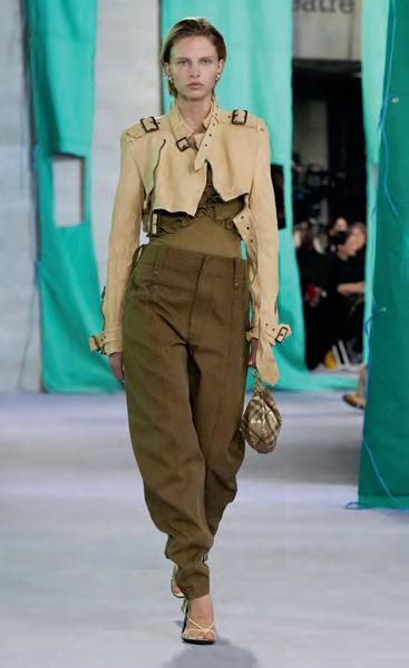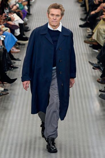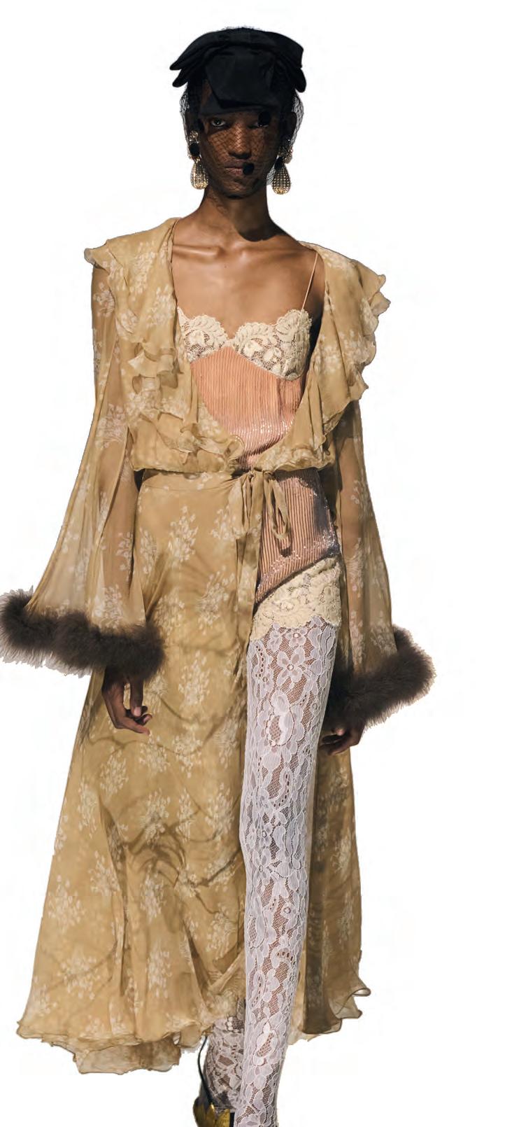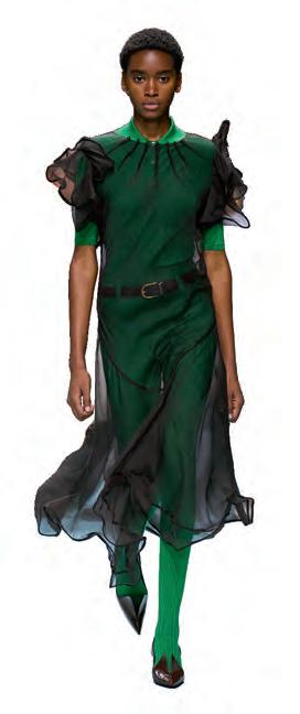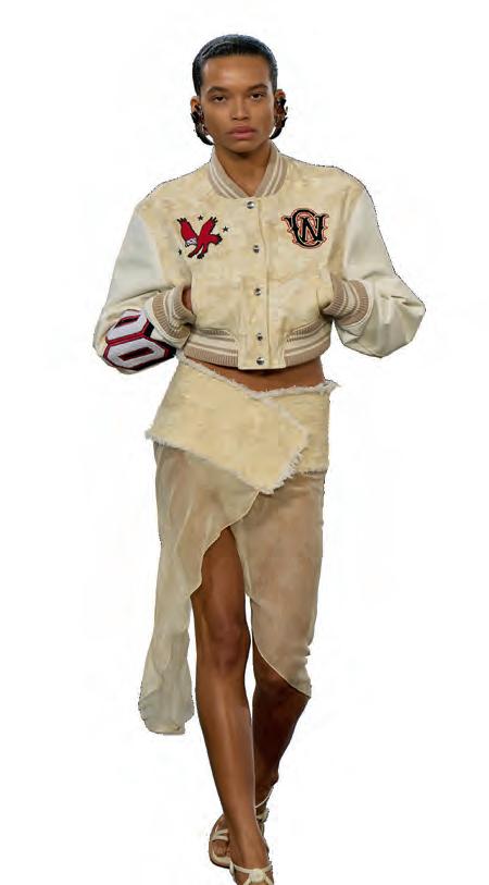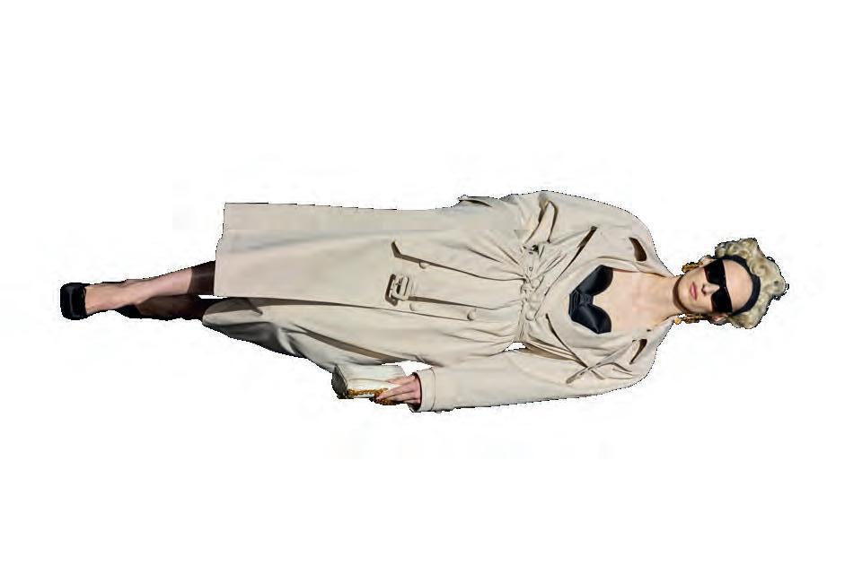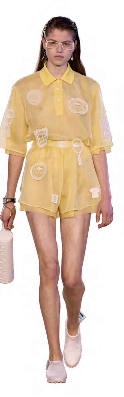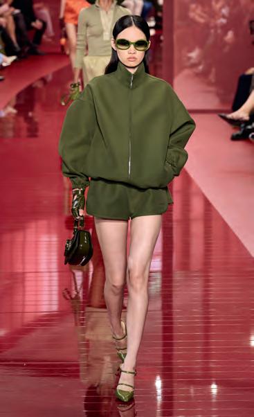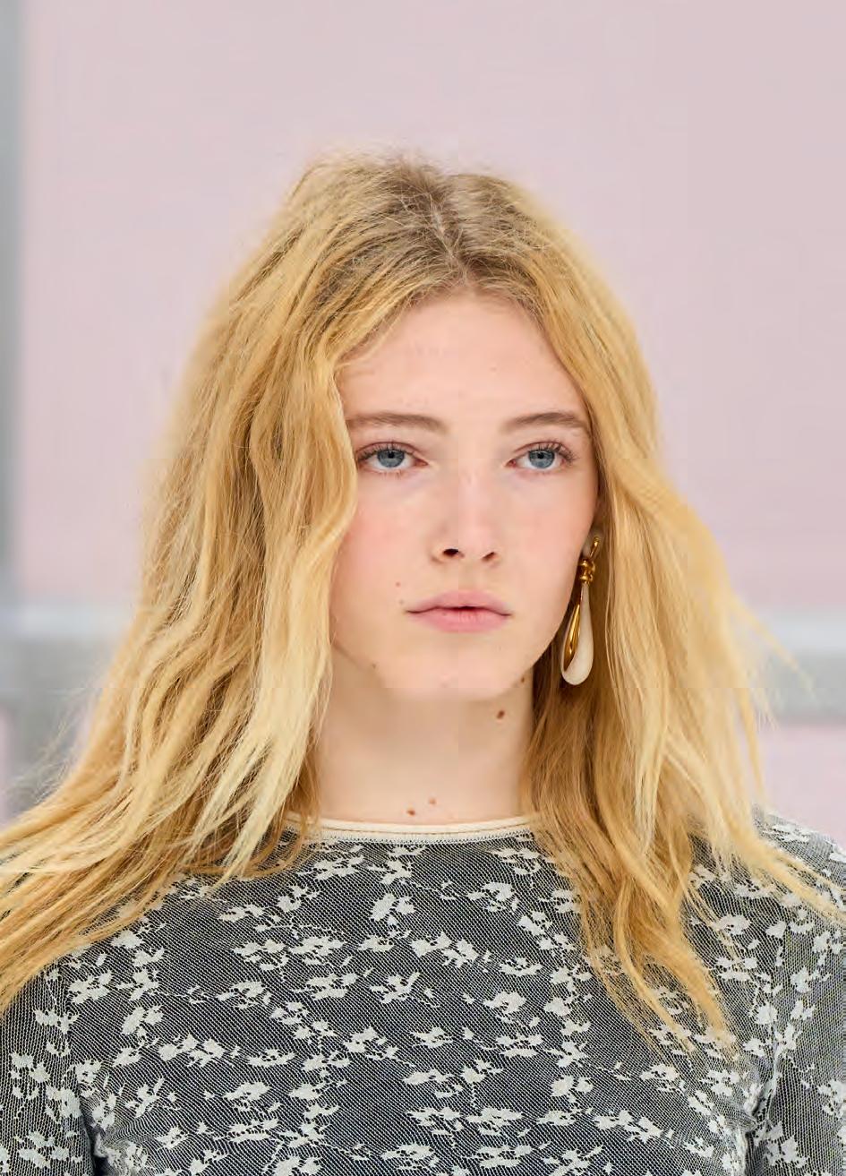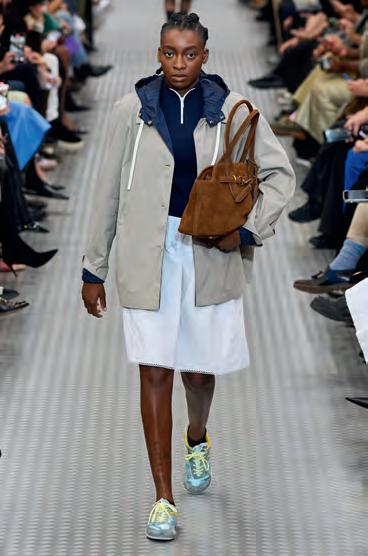 FOR MIU MIU’S SPRING/SUMMER 2025 SHOW, Polish artist Goshka Macuga transformed Paris’ Palais d’Iéna into a makeshift printing plant, complete with newspapers whirling above on conveyor belts. Dubbed The Truthless Times, the fictional publication featured a QR code linking to “We’re in the Endcore Now,” an essay by Shumon Basar. In it, the British author muses on the disorientation of our era: constant dizzying change, blurring boundaries between fact and fiction (real deal or AI deepfake?) and a persistent, gnawing feeling that the end is near but not quite here yet—and so we wait. Amid all the doom and gloom, Miuccia Prada offered reassurance in the form of a collection celebrating singularity and self-expression. (Because when nothing feels real anymore, what’s realer than being your true self?) The whole thing read as a cheerful jumble of shiny fabrics, punchy hits of colour and irreverent mash-ups: a sporty swimsuit paired with a pleated skirt and knee-high socks, Western belts slung low over a diner-waitress-esque dress. It was chaotic in the best sense—fun and unserious rather than unsettling. As the house expressed, “Miu Miu continues to build its world of diverse and fierce individuals, true characters inhabiting its clothes.” The show’s casting couldn’t have better personified the ethos, with creatives such as actors Willem Dafoe (who closed the show) and Hilary Swank, Canadian singer-songwriter Charlotte Cardin, rapper Little Simz and fashion icons Alexa Chung and Cara Delevingne all “walk[ing] in their own truth,” as the brand put it. In a world where trend cycles spin out at an exhausting speed and TikTok “-cores” perpetuate a sea of sameness, Ms. Prada leads us back to solid sartorial ground, encouraging us to block out the noise and simply dress from the heart.