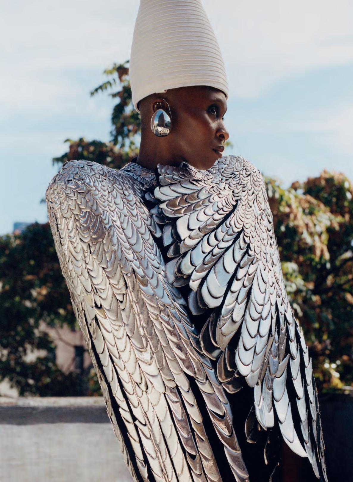 Cynthia Erivo is wearing a jacket, skirt and belt by Louis Vuitton, earrings by Harry Winston, a hat by Binata Millinery and her own nose ring. Photographer Felix Cooper Stylist Patti Wilson Makeup artist Keita Moore (The Only Agency) Manicurist Gina Oh Editorial producer Dana Brockman (Viewfinders)