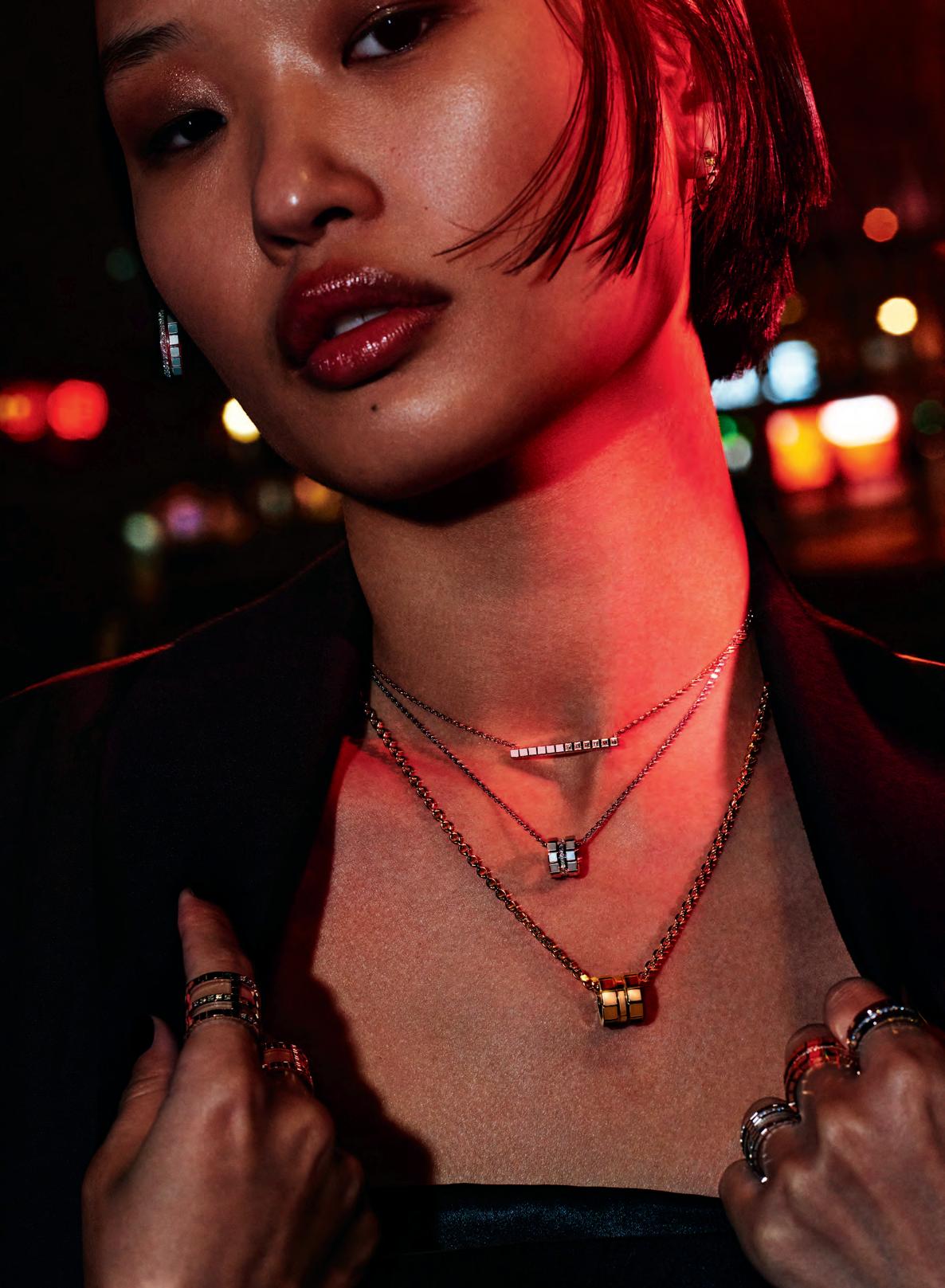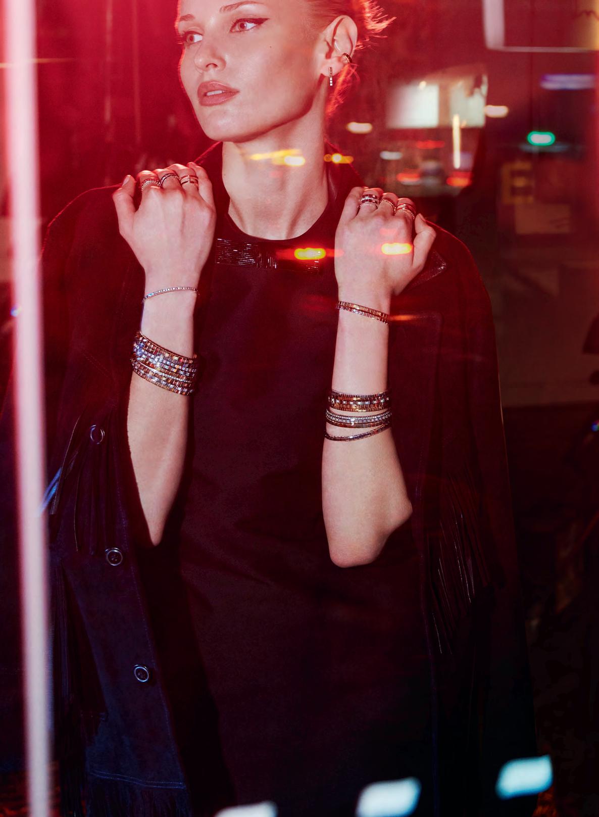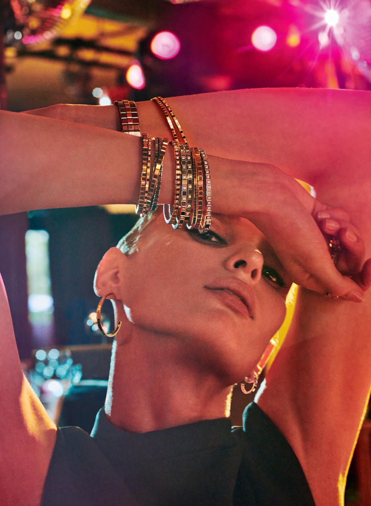 Bold and versatile, Chopard’s Ice Cube jewellery—bracelets, rings, pendants, earrings—goes with everything, whether day or night. Wear it over a sexy-chic black turtleneck like Bella Hadid, in casual mode with jeans and sneakers or with a designer suit, because great jewellery is the fashion linchpin of any look. Add an Alpine Eagle watch to the mix for a refined edge. The answer to the age-old question “What should I wear?” is now clear: a piece, or several, from the Ice Cube collection, of course.