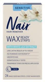 Discover NAIR Wax Ready Strips for effortless facial-hair removal and a flawlessly smooth complexion. Crafted with sensitive skin in mind, the formula features white-lily extract to gently soothe and moisturize your skin. With no heating or rubbing required, these strips are ready to use right out of the box, ensuring a hassle-free cleanup. Enjoy up to four weeks of hair-free skin while pampering and rejuvenating your complexion. Prepare to reveal gorgeously smooth skin in minutes! NAIRCARE.CA