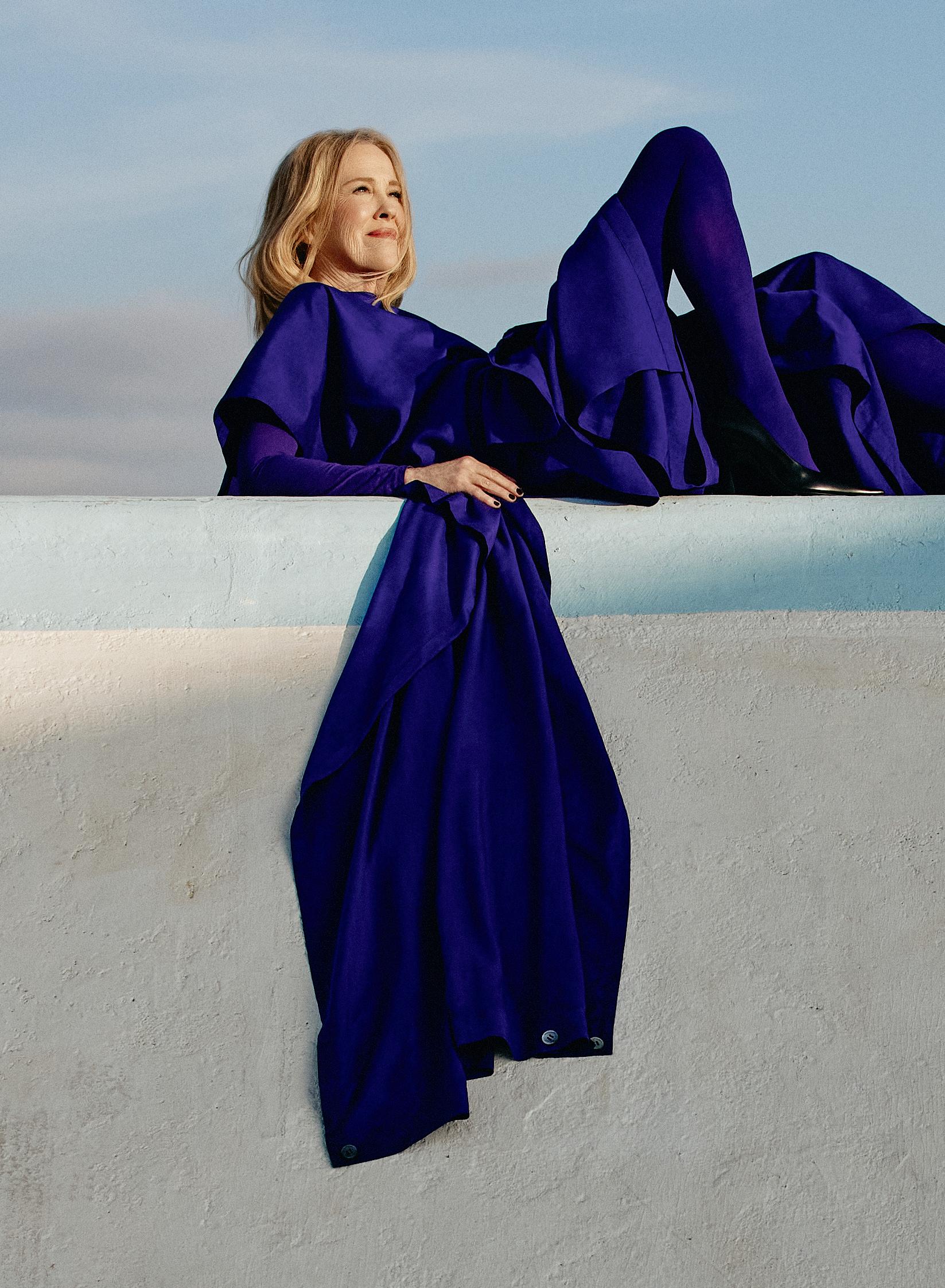 Catherine O’Hara is wearing a blazer, a shirt, trousers, a tie and a bag by Schiaparelli and earrings and a ring by Alexis Bittar. Photographer Royal Gilbert Creative director Olivia Leblanc Stylist Juliana Schiavinatto Makeup artist Jennifer Tioseco (The Wall Group) Hairstylist Owen Gould (The Wall Group) Editorial producer Pénélope Lemay Executive producer Greg Broussard Photographer’s assistants Zachery Hobler, Jared Fix and Yoshi Miyakazi Stylist’s assistant Alexis Kossel Production assistant Joseph Martin Location Bespoke Locations