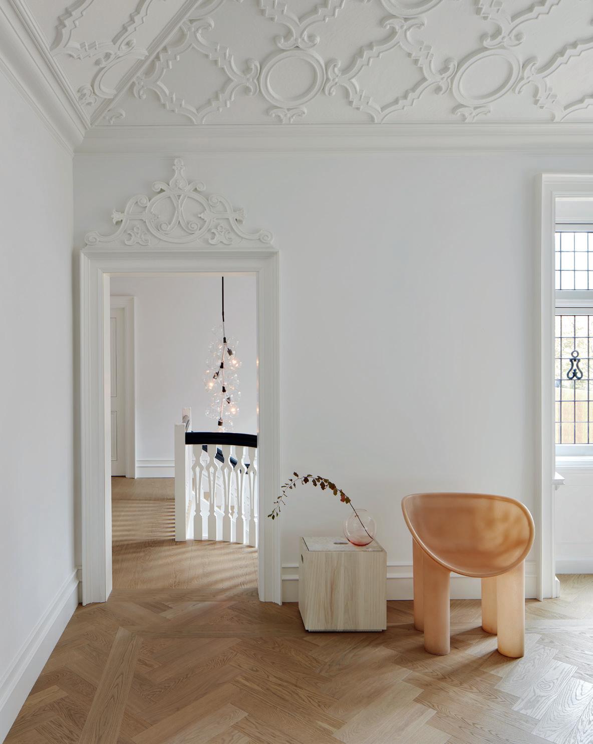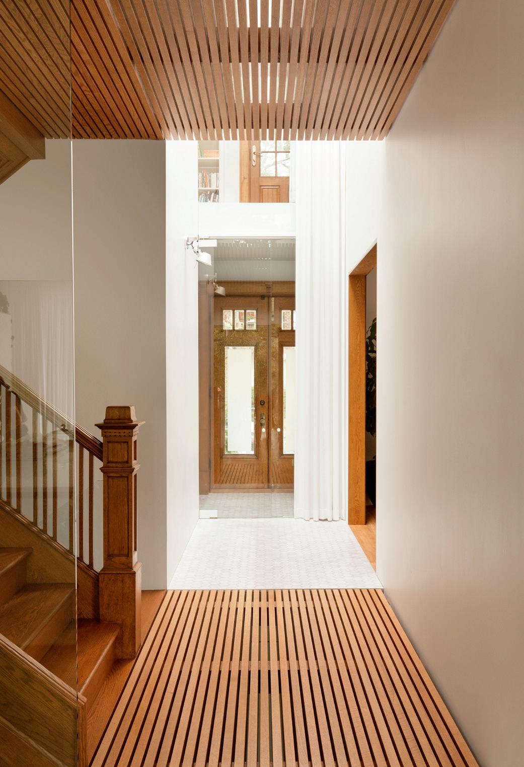 “We’ve received all sorts of awards for this project, and it stands the test of time,” says Parent. “When the day comes that renovations are required, it will be for wear and tear. When we work on a heritage house,” he continues, “there’s a fine line between restoration and alteration. We are always trying to strike a balance between old versus new; the choices we make are often subtle, but impactful. It all has to blend together. This allows history to shine. All of the period pieces have been restored to their original form, and what is modern has been deliberately done in a minimalist way in order to highlight the more elaborate elements like the woodwork, the plasterwork on the ceiling, the original floors and the staircase, which has been opened up.”