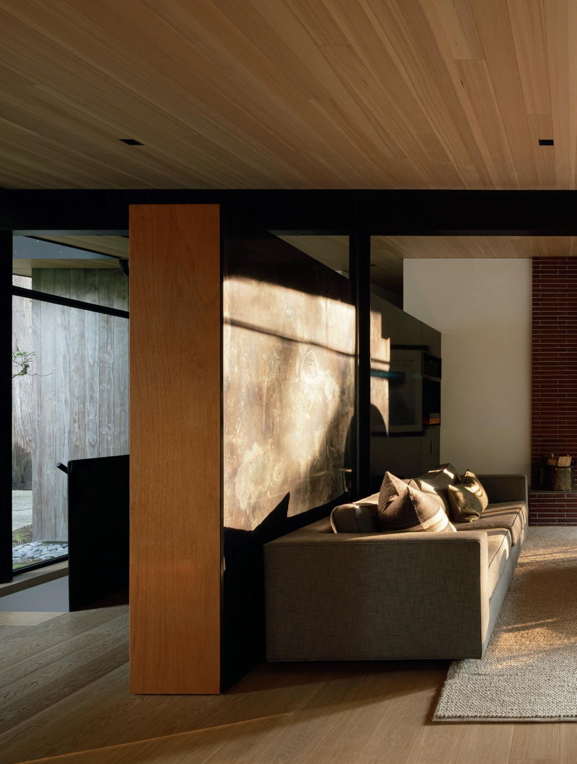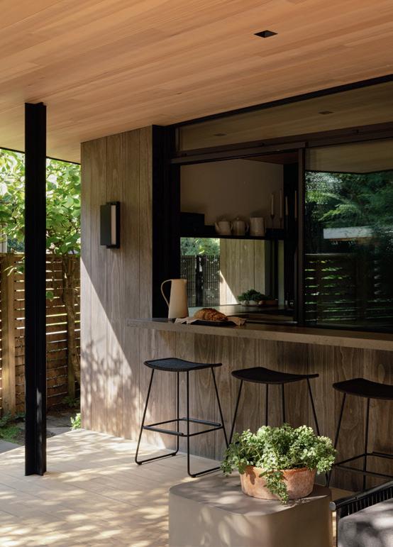 Opposite page — Around the back, a modification to the silhouette, reclaiming the iconic triangular roof shape typical of classic homes in this area, allowed the architects to take advantage of the light offered by a southwestern exposure.